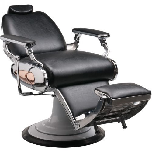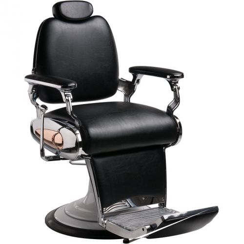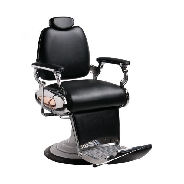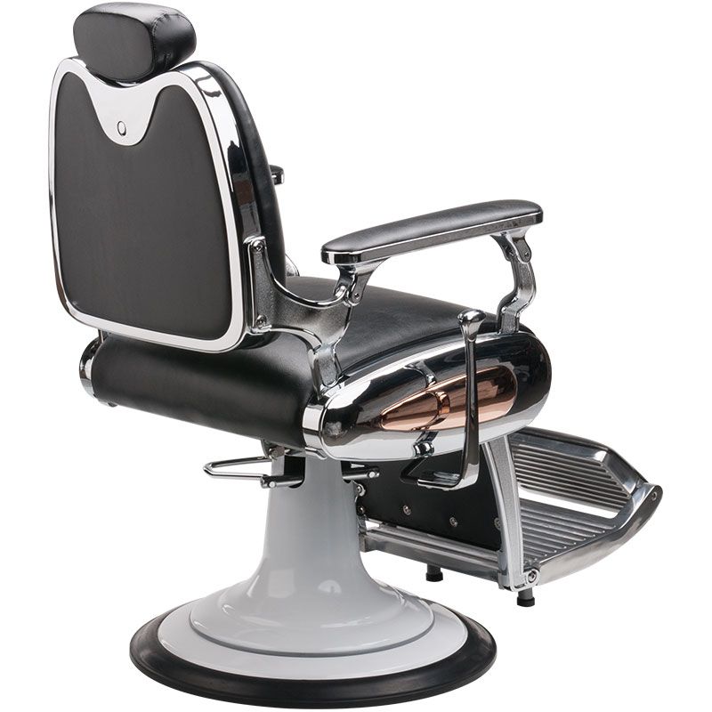 Snygg barberarstol med fin dekoration på sidorna.