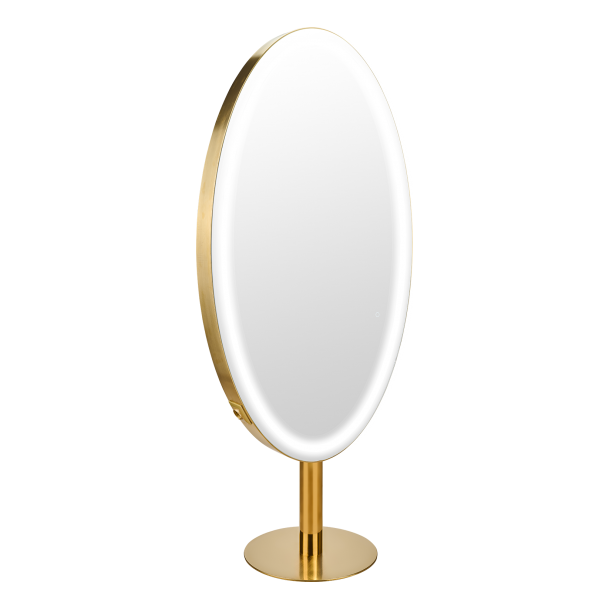 Super snygg oval formad frisörspegel med 2 kund platser på var sin sida.