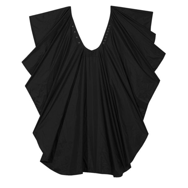 Svart frisörkappa, 100% nylon Snäpp fästen och band Storlek: 136 x 176 cm