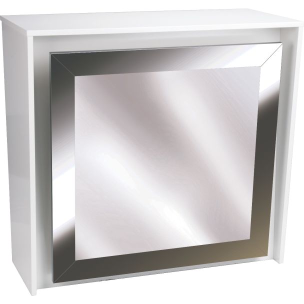 KIRKE är en fin och smidig receptionsdisk med en spegel på framsidan i en ram av rostfritt stål, vilket nyligen har blivit modernt igen. Den upplysta framsidan ser riktigt imponerande ut, och spegeln förstorar rummet optiskt.