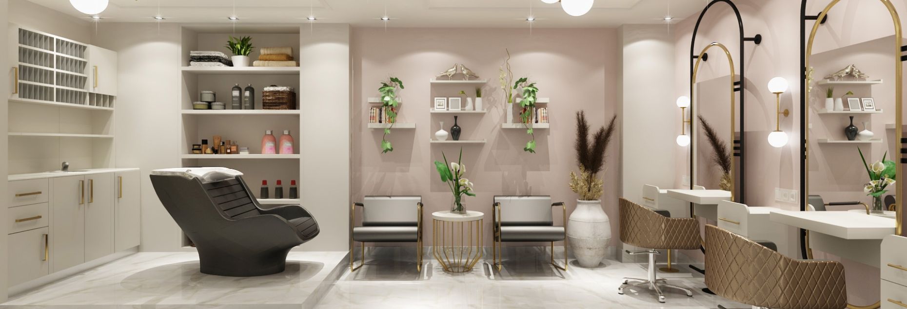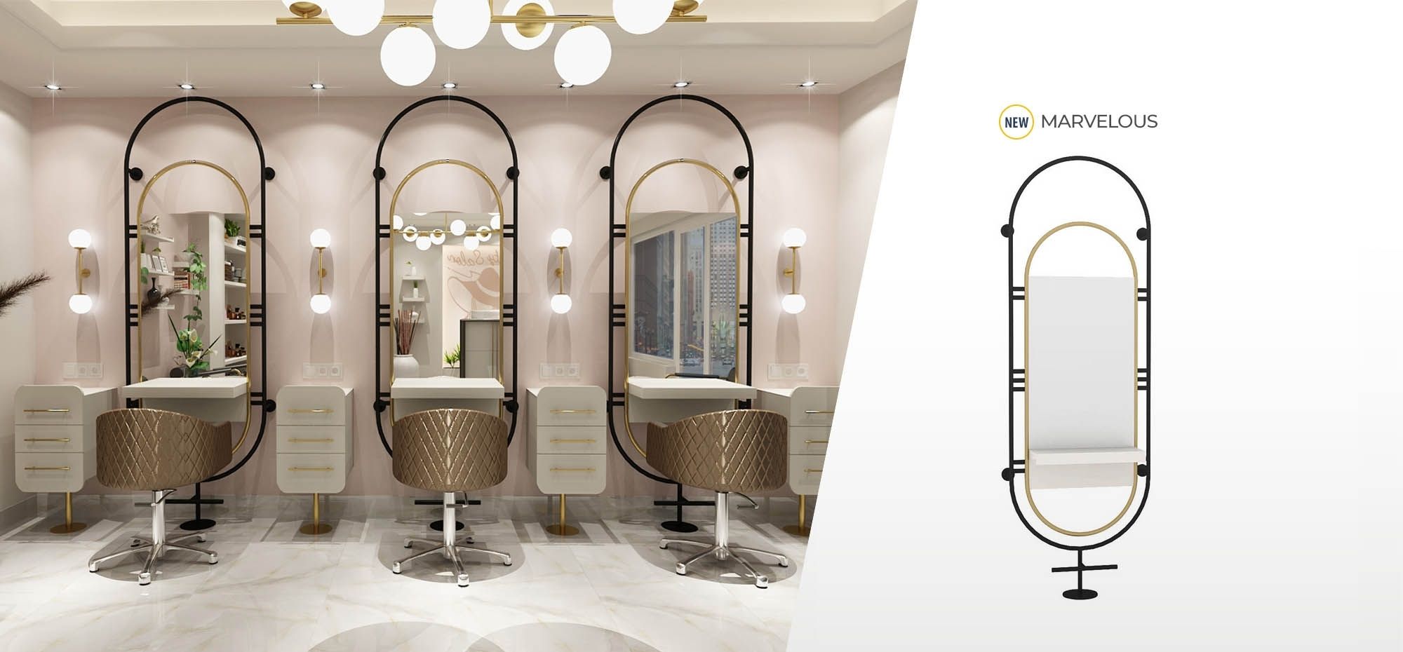 Kollektion Gold är en lyx inspirerad frisörinredning där den röda linjen är guld detaljerna i varje produkt.