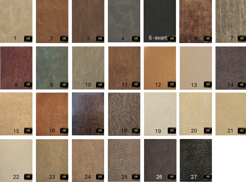 Schamponeringstolen kan beställas i många olika material, se alternativen nedan.