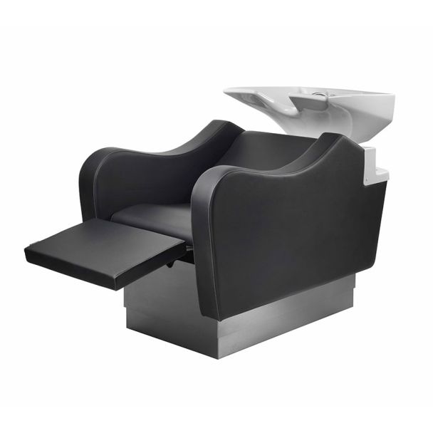 Schamponering som kan justeras i höjdläge för bästa ergonomiska position för frisören.