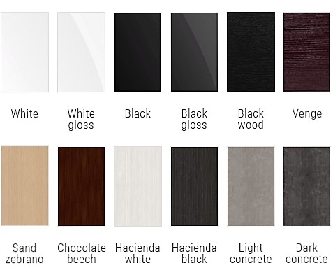 Spegeln kan beställas i vit glans, svart glans eller venge färg.