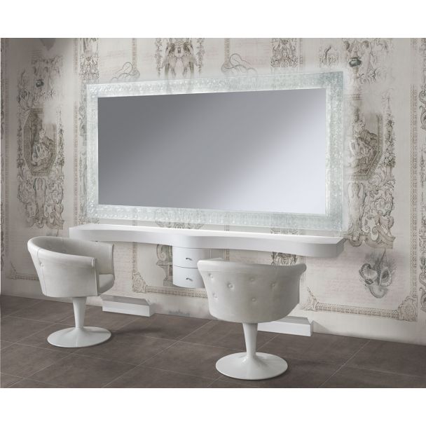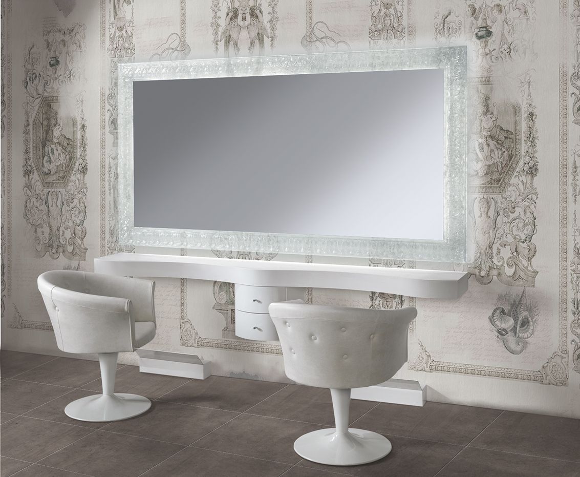 Smält glas, avslutas i transparent strålkastarglasets centrala spegelbelysning med inbyggd ledning, topp och stöd av fotstöd i plastlaminat, fotstöd ingår.