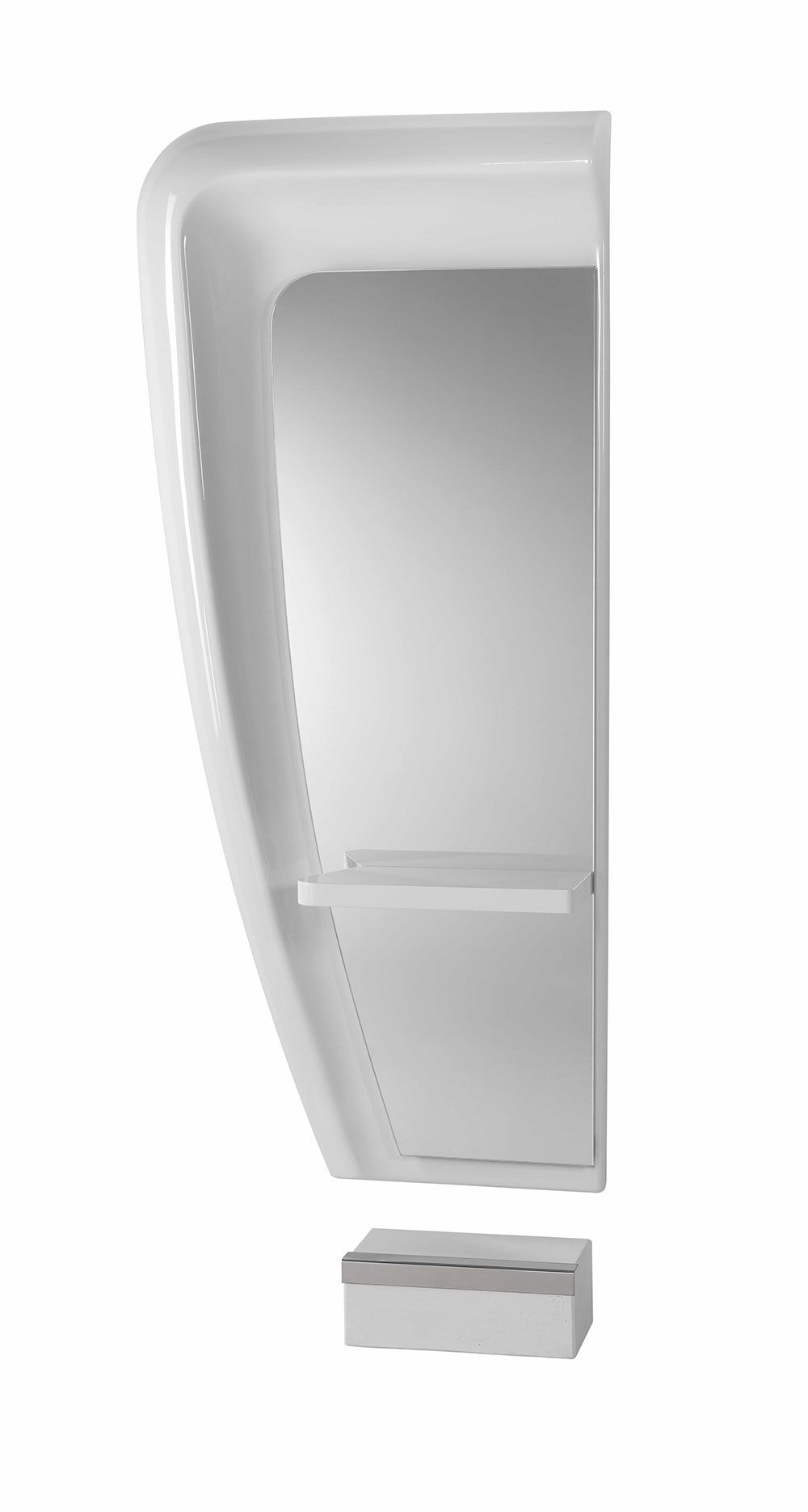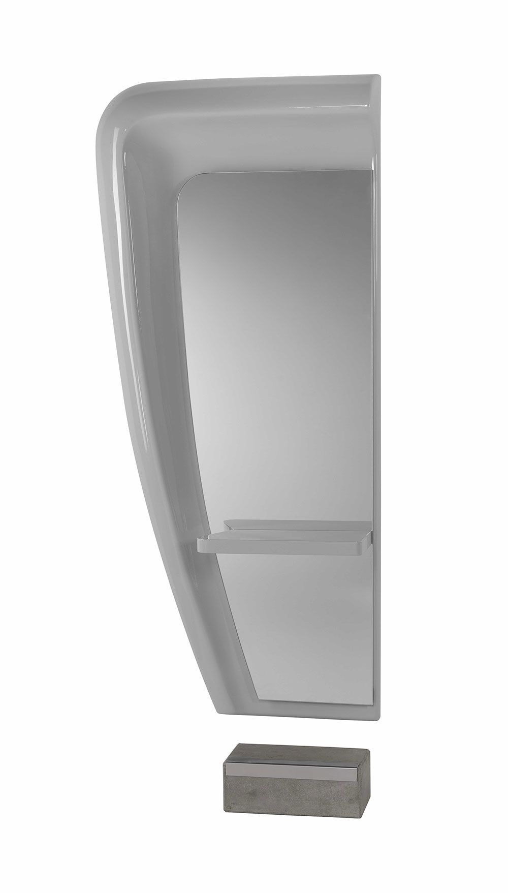 Struktur gelcoat färg i vitt, svart eller grått, hylla i lackerat trä, fotstöd i cement och stål