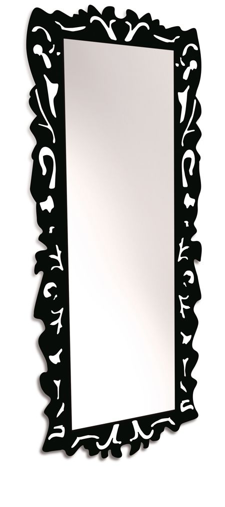 Spegel kan beställas i svart plexiglas eller genomskinlig plexiglas.